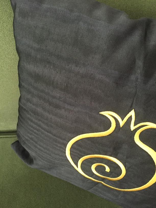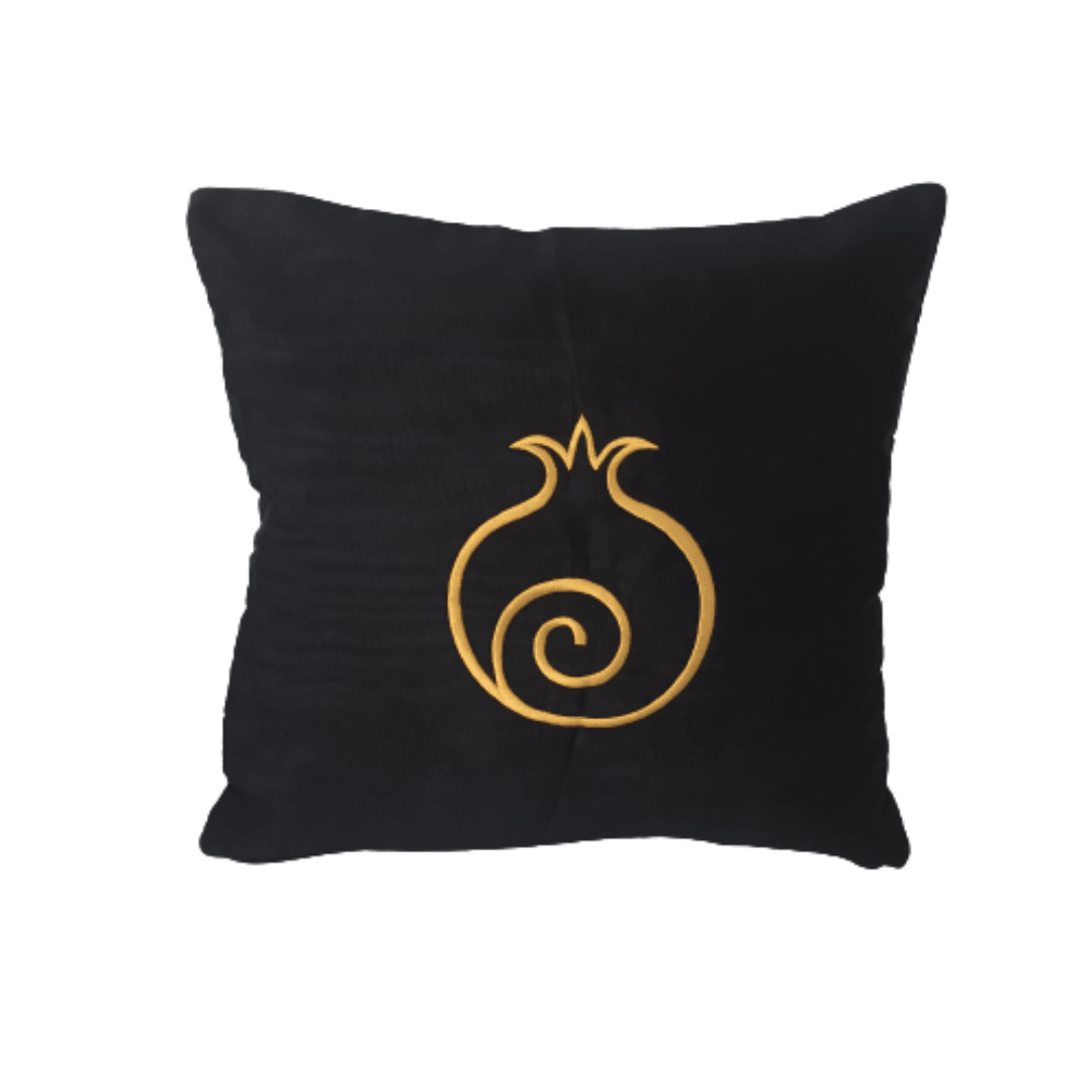 Golden Pomegranate Cushion - Luxury Kutnu Black Silk