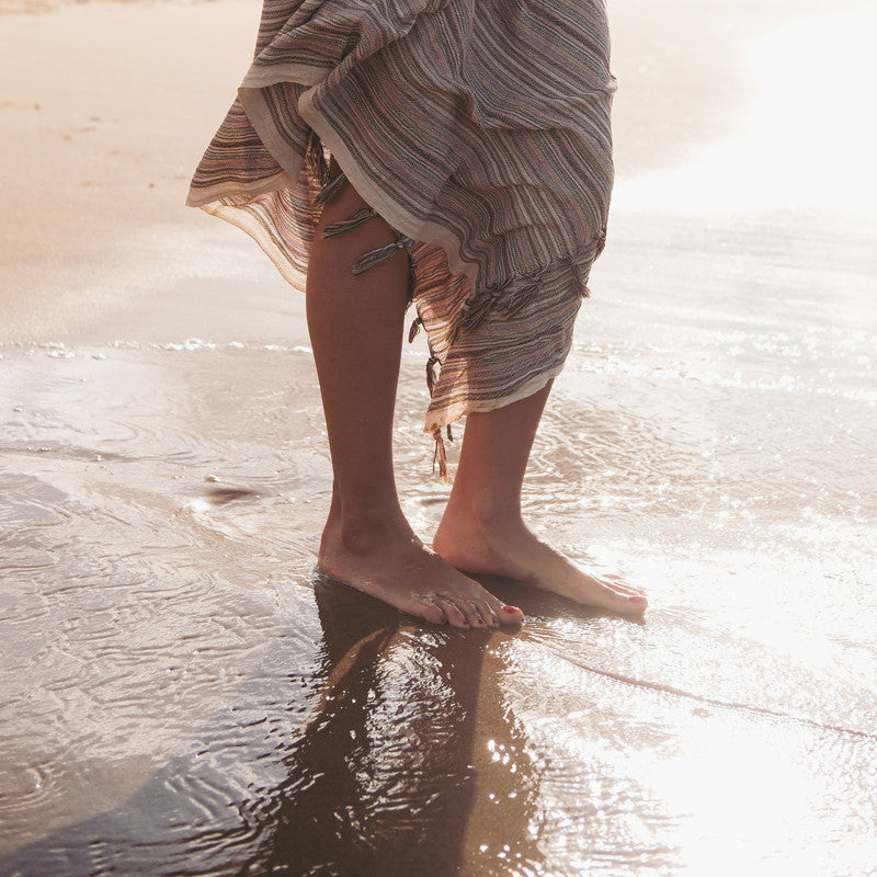 For care, we recommend hand washing in cold water or machine washing with a gentle spin cycle. Do not use a dryer or bleach; hang to air dry is best. With each wash, your garment will become softer and more comfortable . Especially after swimming, a quick wash in cold water without detergent is recommended, which helps maintain the vibrant colors and further soften the cotton's texture.